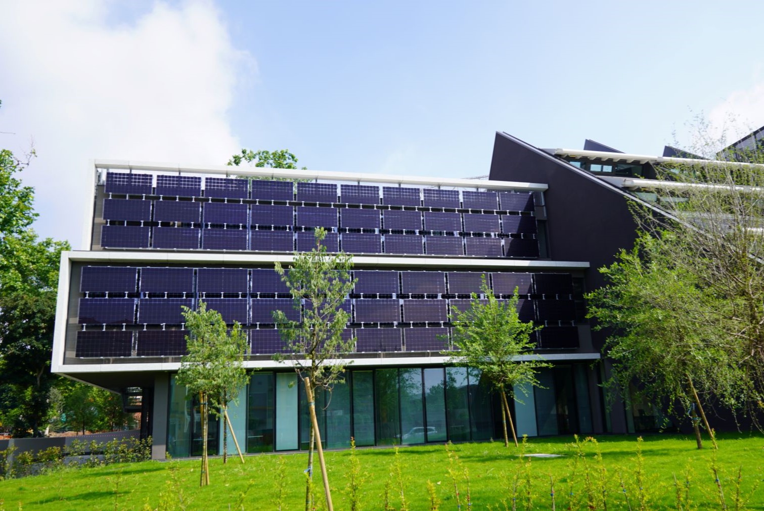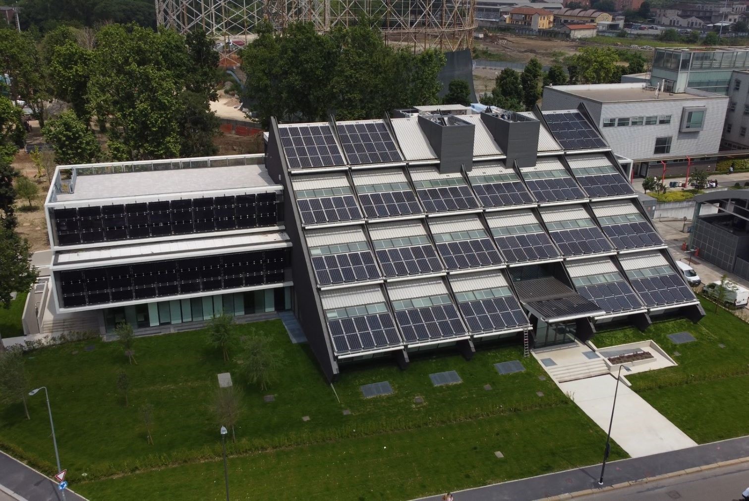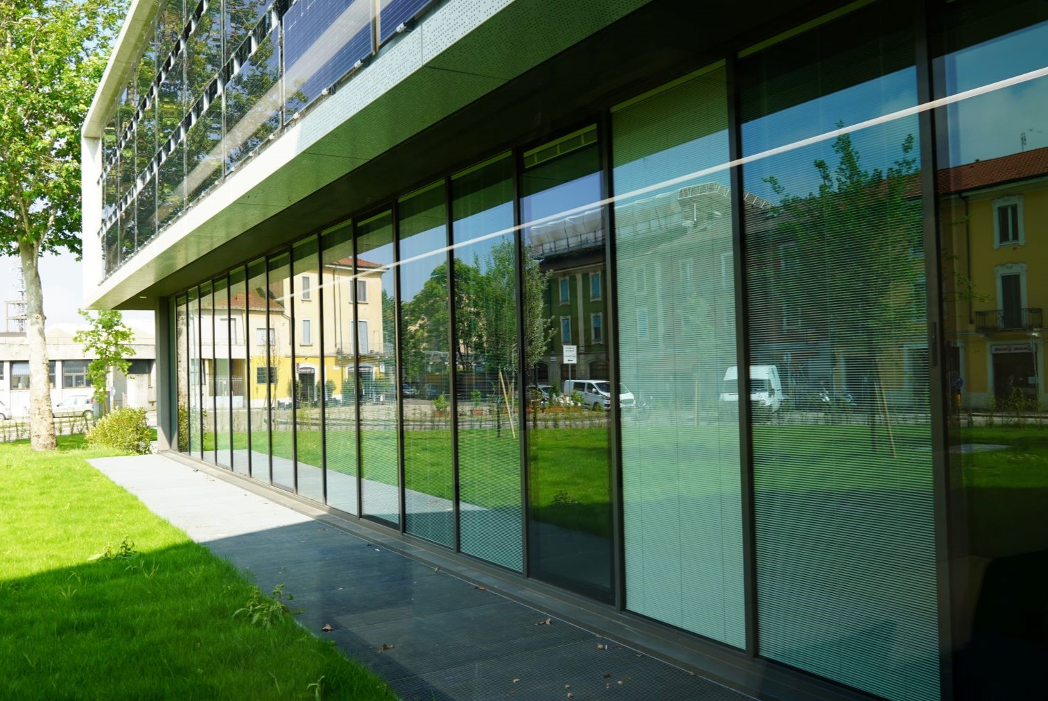 L'edificio è caratterizzato da elevate prestazioni energetiche (nZEB) grazie anche al suo involucro isolante. Seguendo le specifiche di progetto, il Gruppo Focchi ha infatti realizzato una facciata montanti e traversi con sistema sia a pressori e copertine sia a fissaggio puntuale denominato toggle.