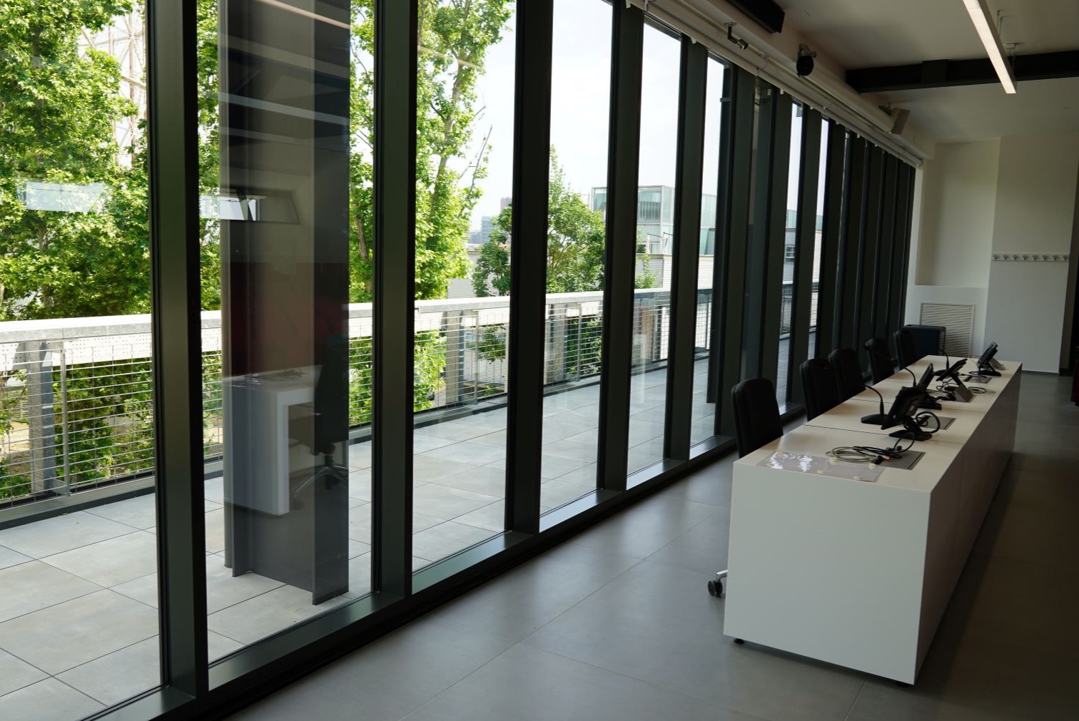 Il Vetrocamera (DGU), con cavità riempite con Argon e coating basso emissivo è provvisto (verso il lato sud) di sistema di oscuramento integrato (veneziane).