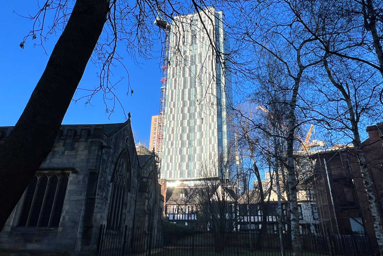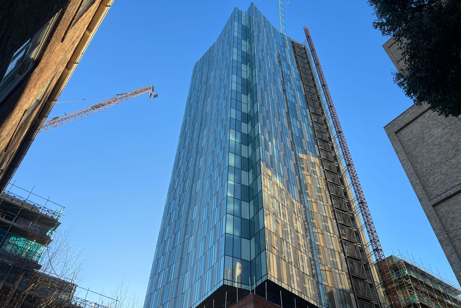 Le finiture prospettiche del podio e della torre sono volutamente contrastanti, con un rivestimento in mattoni rossi dell'edificio lungo la strada e una facciata in vetro sulla torre. La matericità del podio fa riferimento al materiale e alla tavolozza tonale degli edifici storici lungo la vicina New Briggate, e presenta dettagli in ceramica smaltata che si ispirano alle ceramiche locali Burmantofts. La torre comprende pannelli di vetro opaco coibentati e vetrate trasparenti per un aspetto "leggero" e riflettente, che diffonde la luce mutevole del giorno e delle stagioni, nelle sfaccettature cristalline della forma.