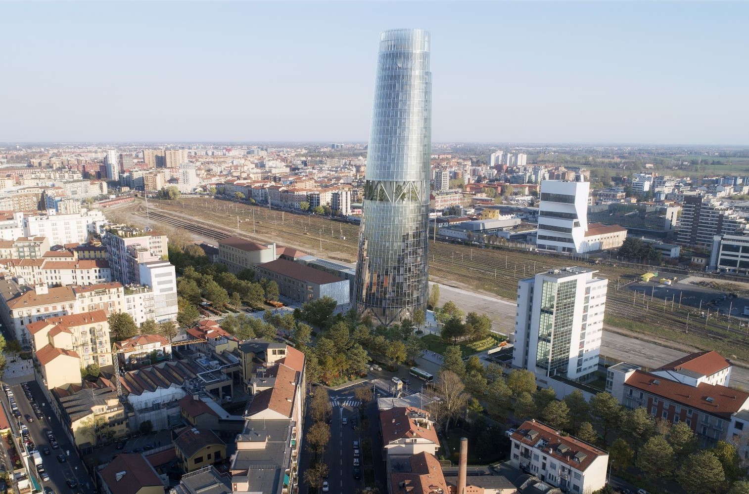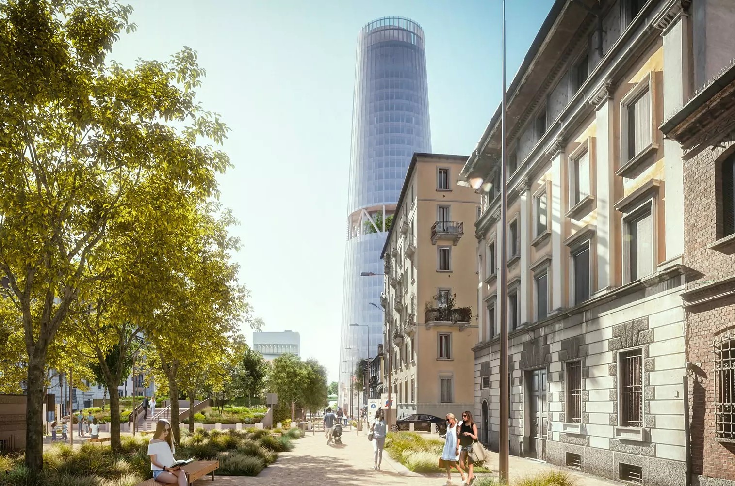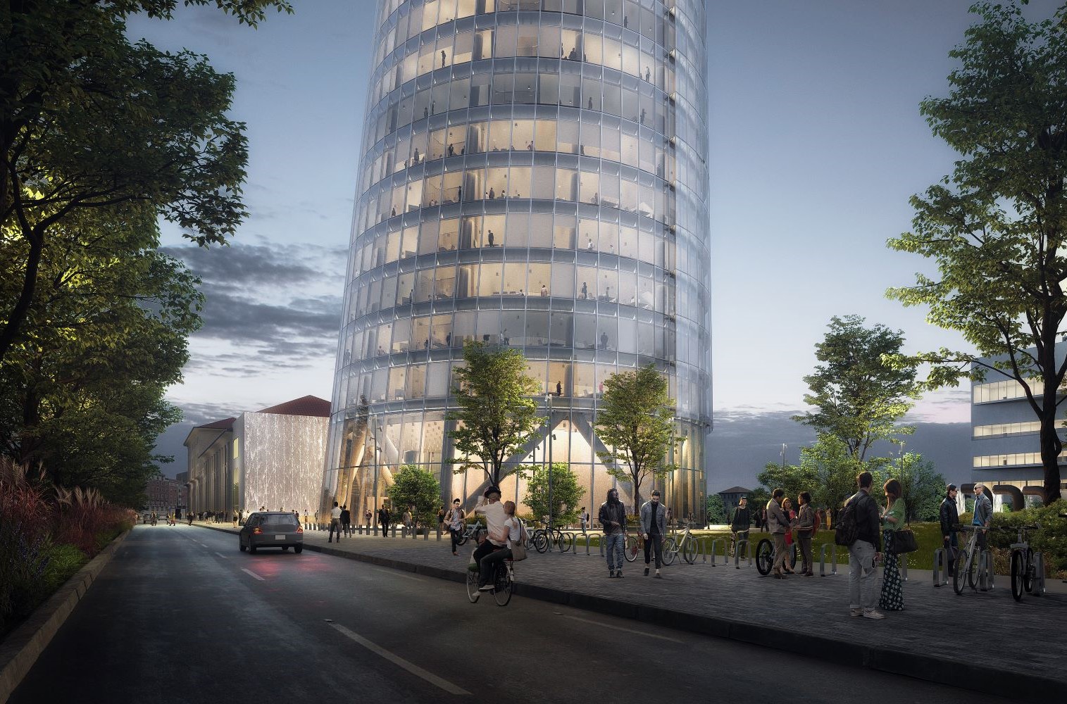 Non mancano due aree verdi: lo Sky Garden a 61 metri e il Belvedere, da cui è possibile ammirare la città a 125 metri d’altezza. Inoltre, un cortile verde collega l’edificio al vicino Museo dell’Energia.La base della torre è progettata per ridurre al minimo l’impatto sul terreno, aprendo l’area all’uso pubblico e rivitalizzando il quartiere con nuove zone pedonali e spazi a beneficio dei negozi di vicinato. La rigenerazione di Piazza Trento dà vita a un nuovo punto centrale, creando due polarità di interesse pubblico lungo Via Crema. L’espansione delle aree pedonali, la creazione di due nuove piazze, l’aumento del verde e il prolungamento delle piste ciclabili contribuiscono a rendere il quartiere diversificato, multigenerazionale e attrattivo. Questo intervento, che innova preservando gli elementi distintivi dell’area, si inserisce in una trasformazione urbana strategica perfettamente allineata con le direttive del PGT 2030.
