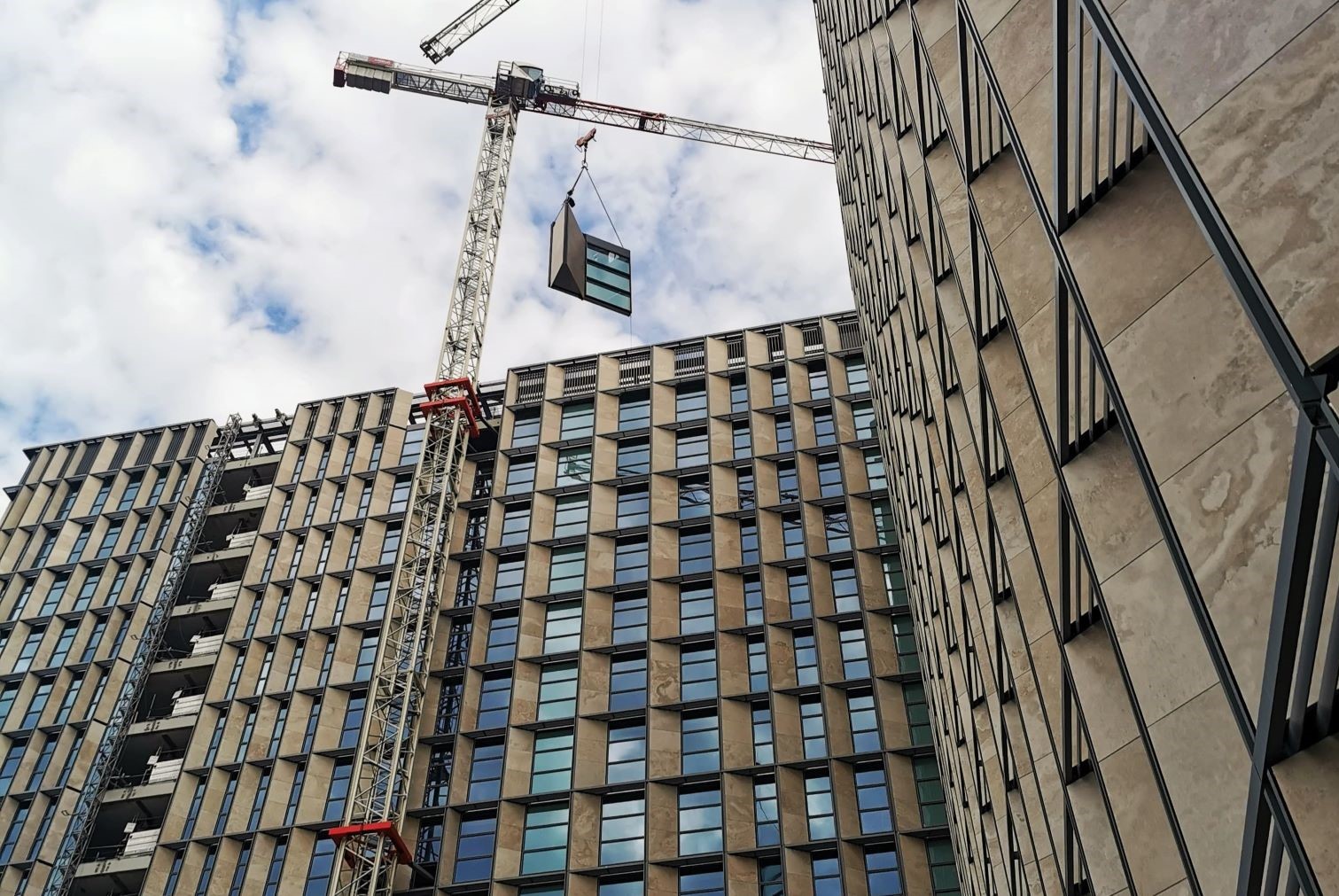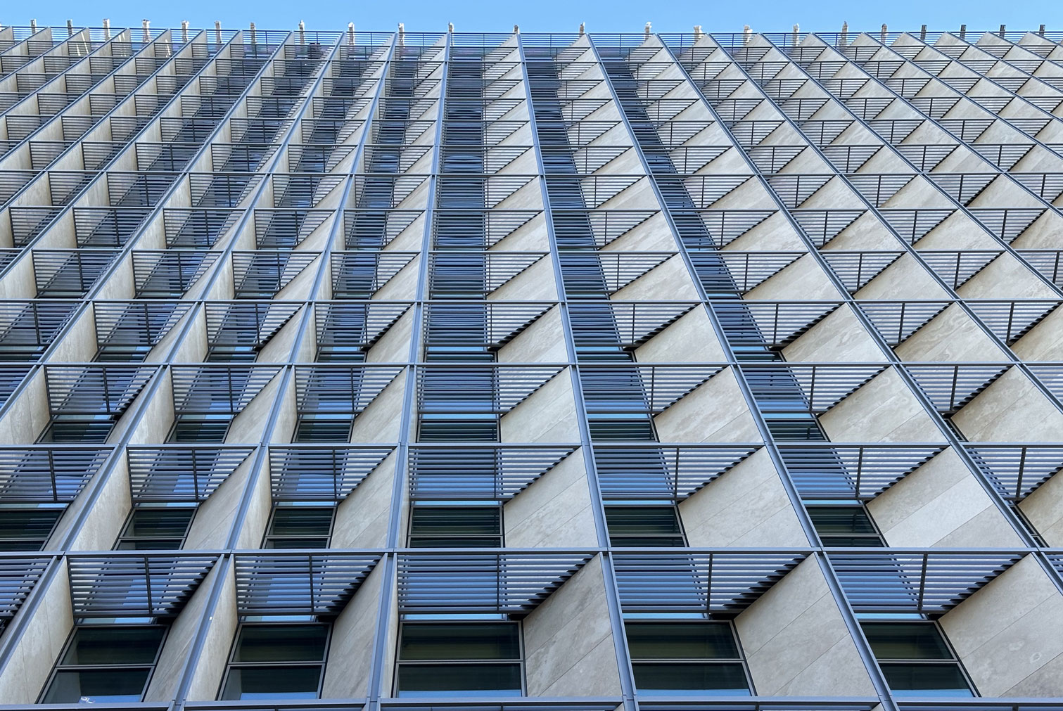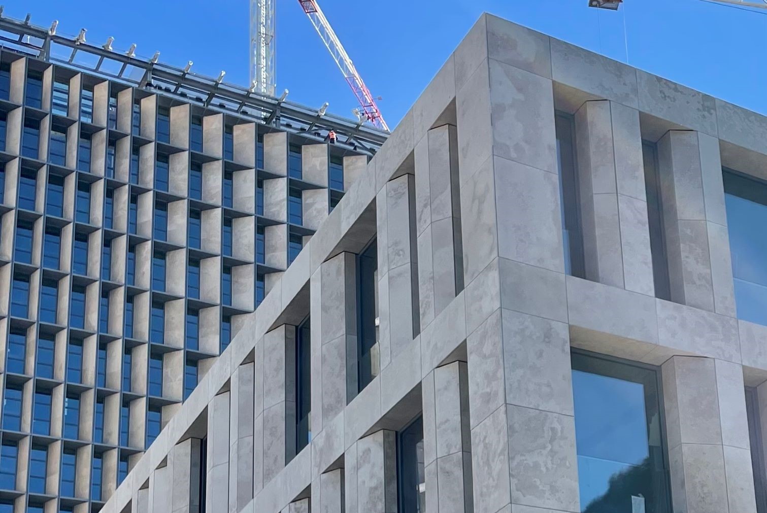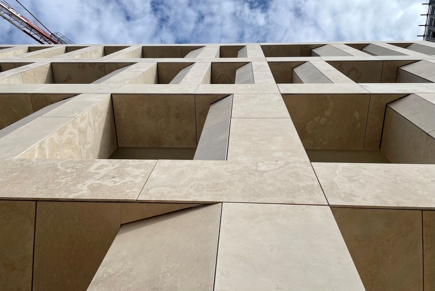 Di particolare impatto visivo sono anche le “Lesene”, elementi verticali sporgenti fino a un metro realizzati in acciaio inox AISI 441, rivestiti con lastre di Travertino Romano, una scelta di materiali che richiama la tradizione storica romana e conferisce al complesso un tono di prestigio e solidità.